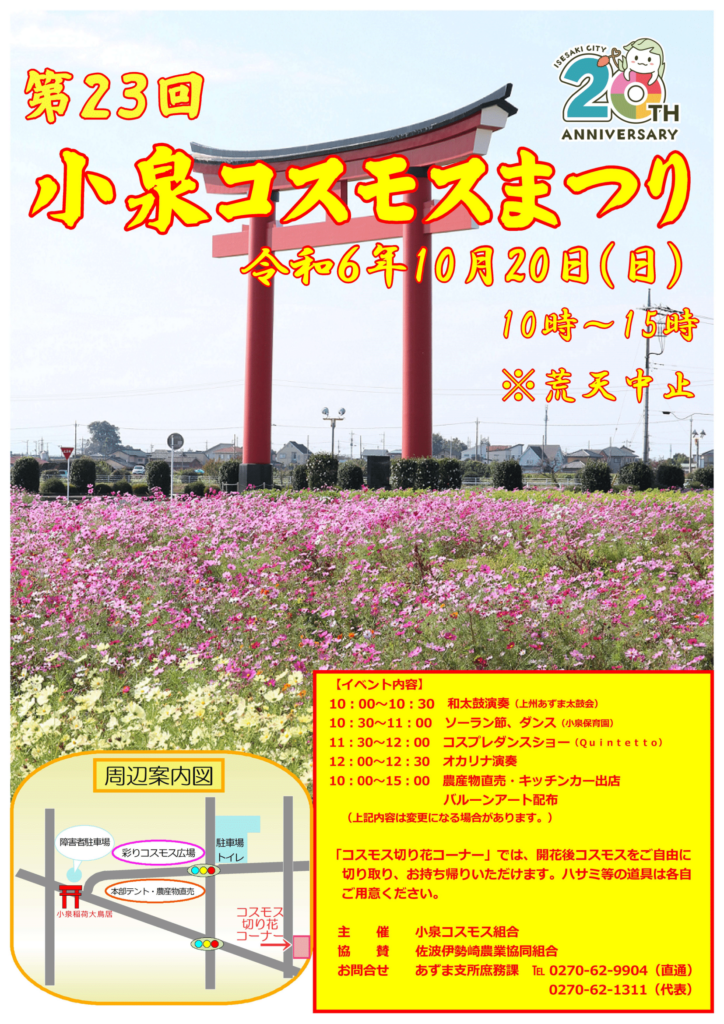 「小泉コスモスまつり」(いせたまボイス) 2024年10月14日 いせたまボイス 今回は、【小泉コスモス組合】組合長の牛久保さんにインタビュー! 10月20日(日)開催の「第23回小泉コスモスまつり」について、お話を伺いました。